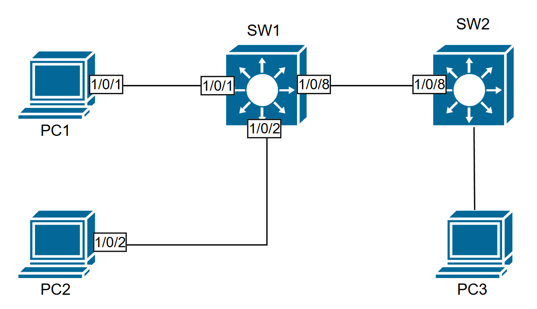 SW2(config)#int ethernet 1/0/8