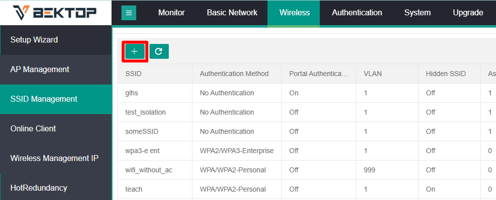 Также создать новую беспроводную сеть можно через web-интерфейс контроллера: