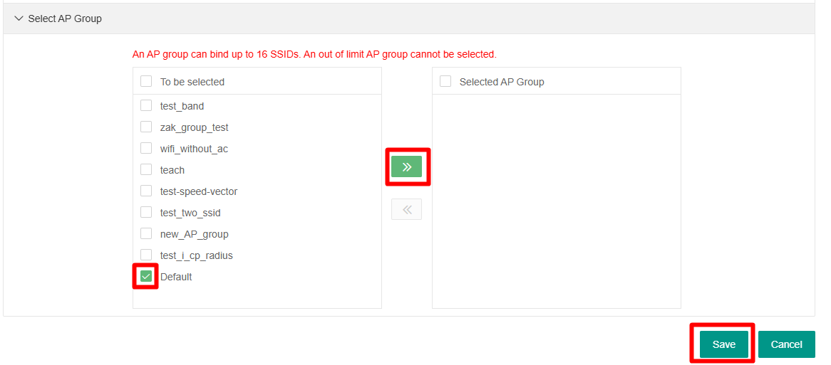 При создании беспроводной сети через web-интерфейс контроллера, её нужно будет сразу привязать к AP Group:
